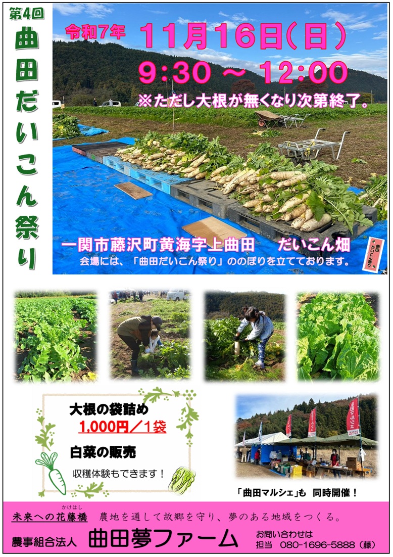 一関市藤沢町黄海の曲田地区のお母さんたちが始めたマルシェは、今年4年目となります。人気の旬の地元産野菜を目玉に、手作り雑...