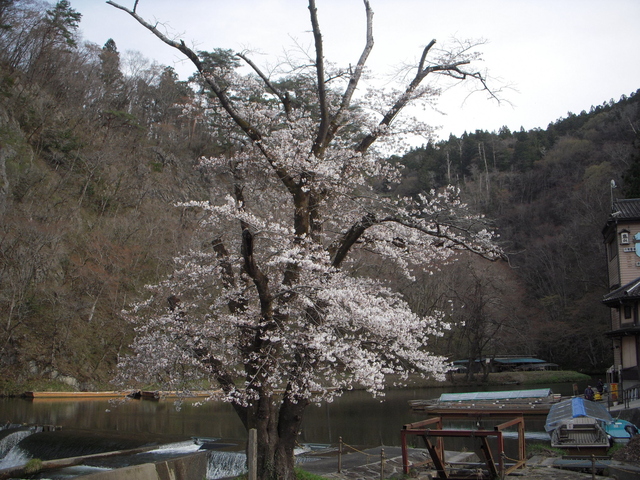 [撮影日/2026年4月20日]ダイナミックな景観の渓谷に、約2キロにわたって、ソメイヨシノとエドヒガンが約200本植えられております。一番老齢のエドヒガンは「貞山桜」と名付けられおり、伊達政宗自ら植えたと言われている桜です。