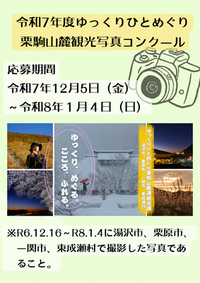 令和7年度ゆっくりひとめぐり栗駒山麓観光写真コンクールを開催します!